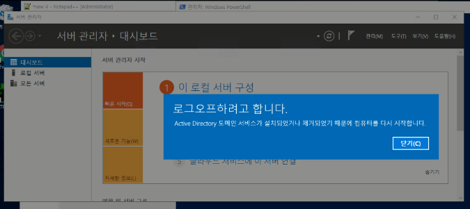 Install-WindowsFeature -Name AD-Domain-Services -IncludeManagementTools //AD설치
